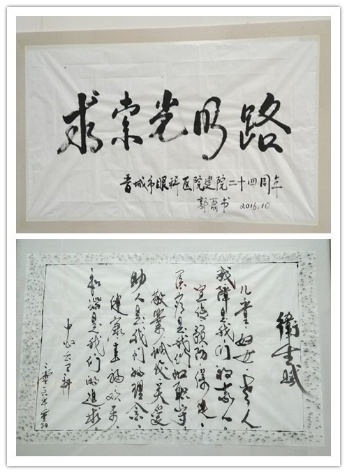 晋城市眼科医院为弘扬社会主义核心价值观,以建院二十多年来医院发展为主题,在建院24周年来临之际,开展了一次书画展活动。一幅幅精美的毛笔、硬笔书法及美术绘画作品在我院展出,吸引了广大患者及家属的驻足观看。