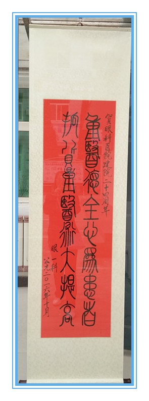 医院即将迎来它的第二十四个生日,我庆幸自己的四年时光,能够积淀在医院厚重光辉的历程之中。我将怀着一颗感恩的心,将四年的青春谱写成一曲赞歌,为她祝福!二十四年的风风雨雨,伴随多少前进与希望,二十四年的起起落落,历经多少奋斗与辉煌! 鹰击长空,鱼翔浅底,我们要去开创一条崭新的道路,为了眼科事业更加辉煌,给医院涂上清新的色彩,让医院充满爱的滋养。因此,我们携手并进,坚定信仰,我们意气风发,放飞希望!