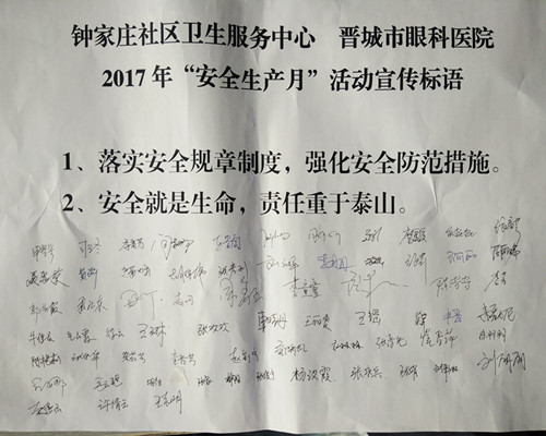 您现在所在的位置:晋城市眼科医院-钟家庄社区卫生服务中心安全生产月系列宣传活动 |