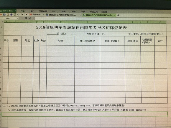 报名方式:1、现场报名(筛查):晋城市眼科医院(眼1门诊、眼2门诊)