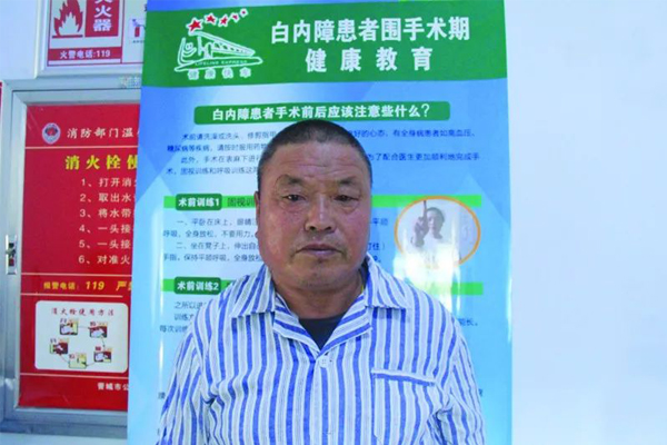 在病房门口就听见何秋龙和同行的患者聊天说道:“五年前,我的眼睛就看不清楚东西,视线下降了很多,我还有高血压,起初以为,是高血压后遗症又或者是眼睛上火了,并没有特别在意。直到去年秋天,我的左眼眼前一片模糊,什么也看不清了,平时看东西需要捂住左眼依靠右眼很吃力的去看。在家做饭经常是炒菜的时候放油不小心浇在了火上;想喝水的时候不小心把水洒在了地上;常常是看准了东西去拿,结果却扑了个空。”那你没有去医院看看去?“听人说起过我这是得了白内障,做这个手术的话会比较贵,还不知道能活几天,凑合过吧!直到2018年的农历正月,偶然听邻居说起现在国家免费治疗白内障,可以免费手术治疗。我当时就想,这估计是骗人的吧,哪有这样好的事情呢!后来多亏儿女们多方打听,积极劝慰我接受手术治疗,因此才有机会重见光明啊。”