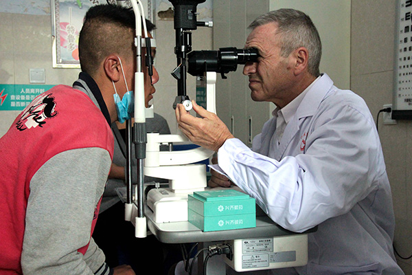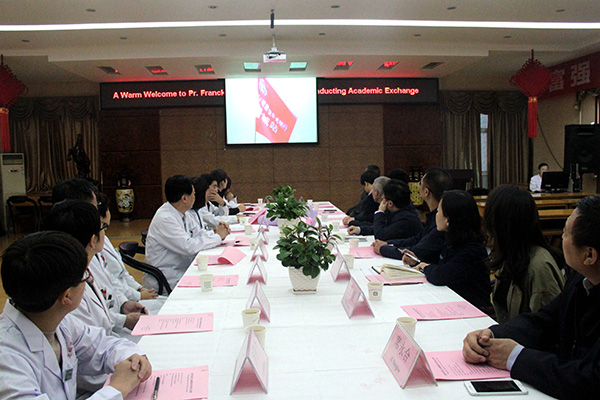 欢迎仪式结束后,Franck Bacin教授立即投入到眼病会诊工作中,在眼科门诊开展疑难眼病会诊。