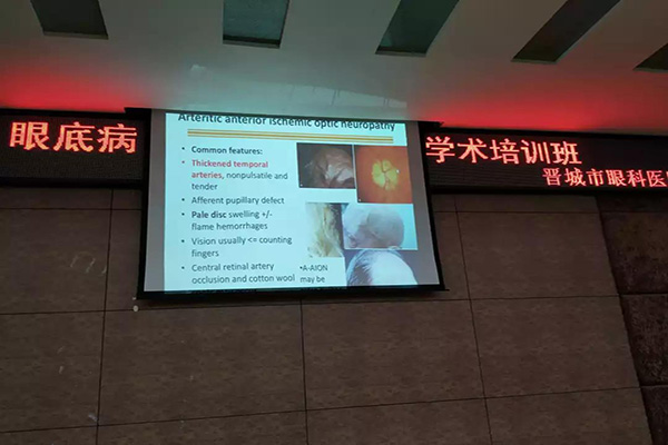 下午,Franck Bacin教授以缺血性视神经病变为题与晋城市眼科医院和晋城市各县区医院的医护人员进行了详细全面的学术交流。据悉,在后续的十多天中,Franck Bacin教授将继续为当地的疑难眼病患者进行会诊和眼科同行进行教学培训。