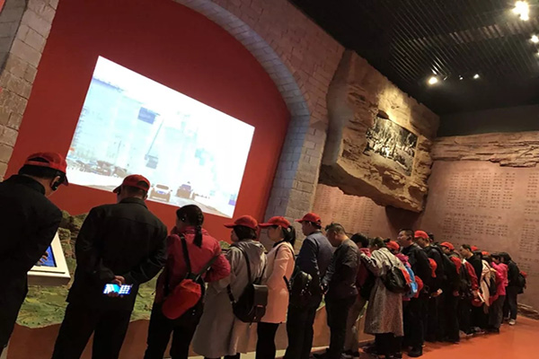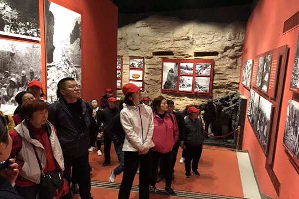 大家怀着崇敬的心情,参观了红旗渠纪念馆、分水苑和青年洞。一幅幅感人的图片、一件件珍贵的实物,一座座陡峭的山崖旁奔流的渠水,记载着当年林州人民“重振山河”的气概,仅靠一双手,众志诚成,十年7万人共修渠道1500公里,自力更生、艰苦创业、团结协作、无私奉献的红旗渠精神打动着现场每一个人。