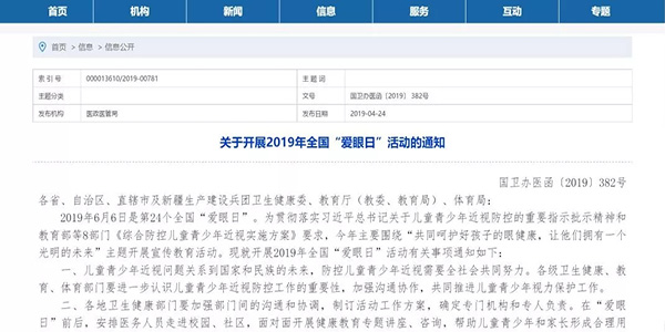 2018年8月30日,国家教育部、卫健委等八部委联合出台《综合防控儿童青少年近视实施方案》。