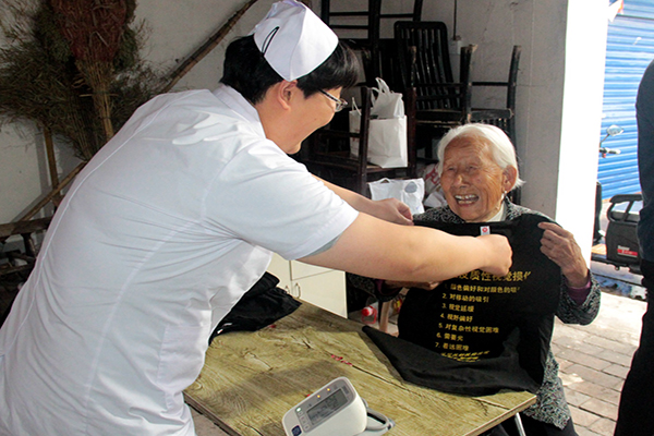 活动现场,我院医务人员志愿者们在敬老院内设罝“临时诊室”,认真细致地为每位老人测视力、查眼底,给出科学治疗建议,实实在在地为敬老院送去光明。
