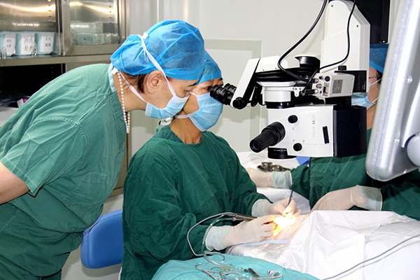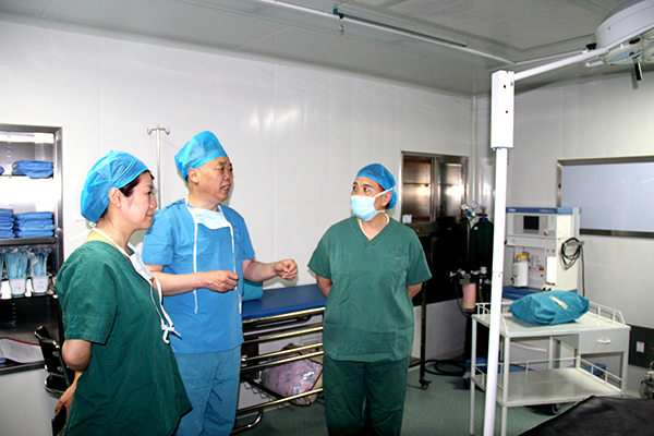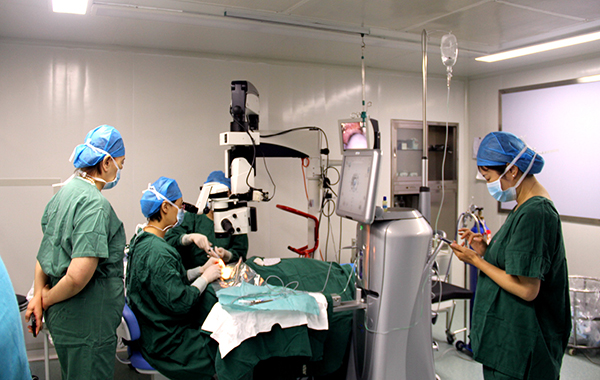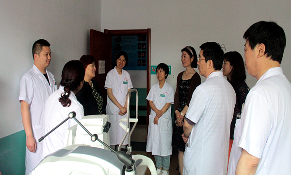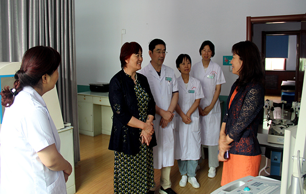 考察组一行现场观看了两台已完成培训医生的白内障手术来考核医院眼科医护人员技术水平,实地考察了我院的眼科门诊诊断室、手术室、住院病房以及医疗设备等情况。