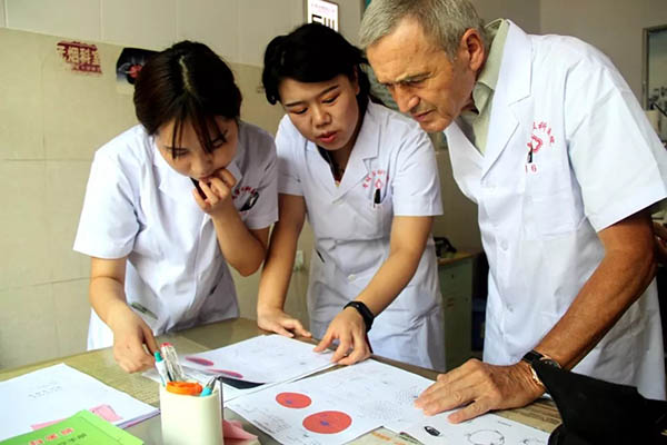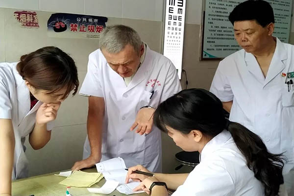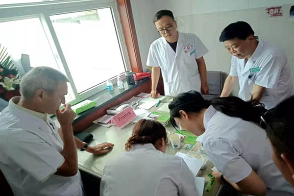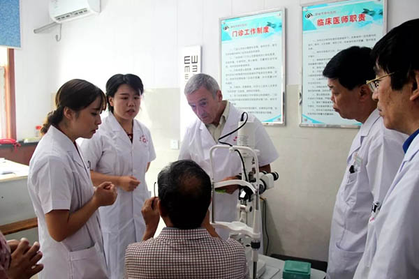 简短的欢迎仪式结束后,Franck Bacin教授立即投入到眼病会诊工作中,在眼科门诊开展疑难眼病会诊。