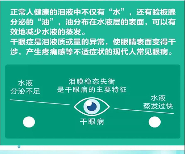 干眼症是由于泪液的量、质或流体动力学异常,引起的泪膜不稳定和眼表损害,从而导致眼睛不适及眼表组织病变的一类疾病。