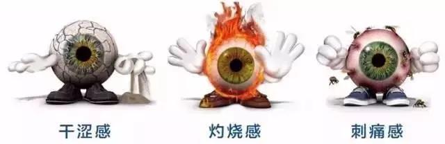 包括眼睛干涩、容易疲倦、眼痒、有异物感、刺痛、灼热感、分泌物黏稠、怕风、畏光、对外界刺激很敏感;有时眼睛太干,基本泪液不足,反而刺激反射性泪液分泌,而造成常常流泪;较严重者眼睛会红肿、充血、角质化、角膜上皮损害而有丝状物黏附,这种损伤日久则可造成角结膜病变,并会影响视力。