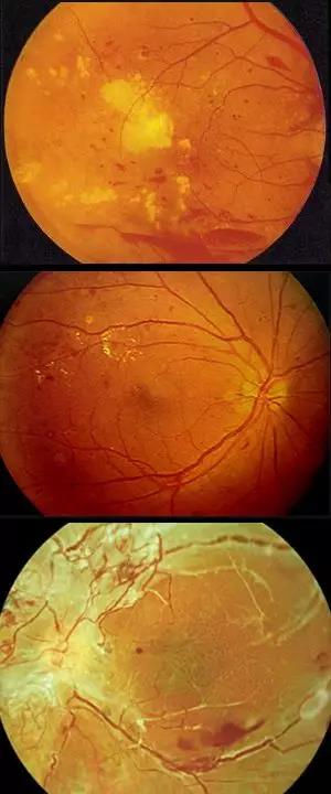 教科书上对糖尿病视网膜病变的介绍,是这样的。