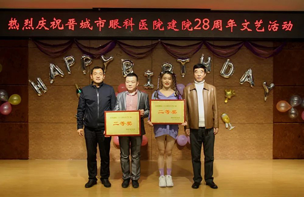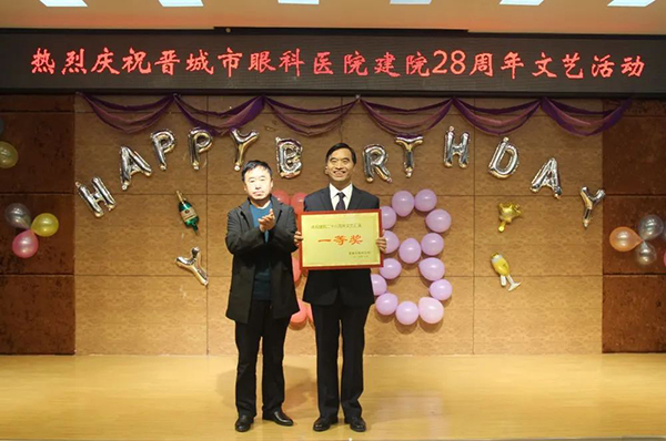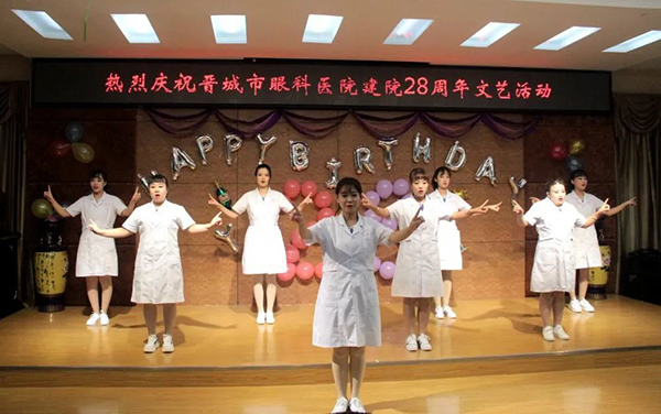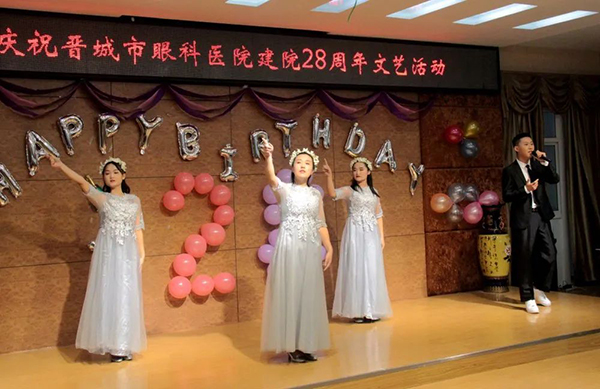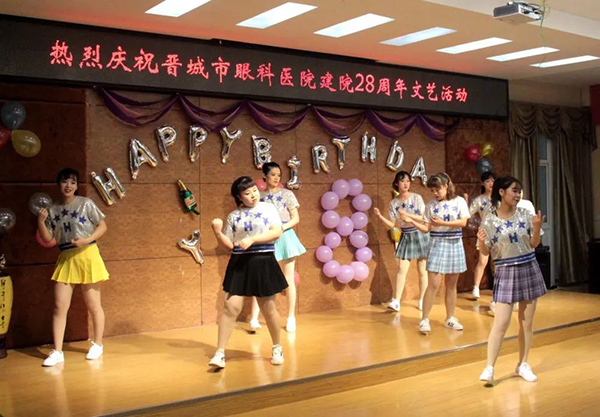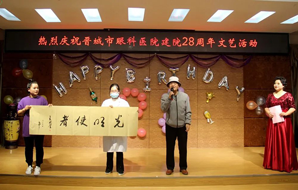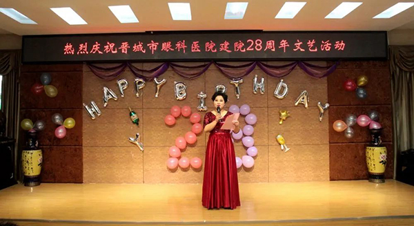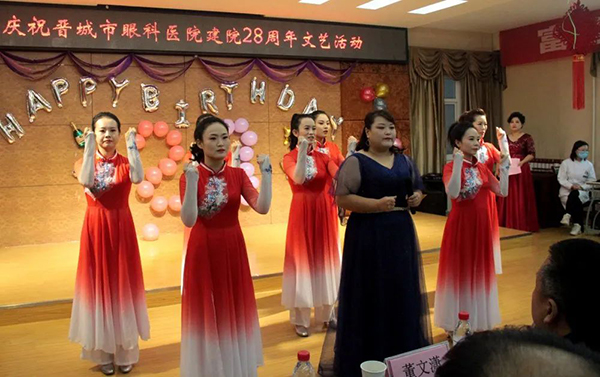 峥嵘岁月共见证,二八华诞谱新篇,2020年10月15日下午,由晋城市眼科医院院办、工会等部门联合主办的晋城市眼科医院建院二十八周年文艺活动在门诊三楼会议室隆重举行。城区卫体局裴晋平副局长,城区卫体局魏晋燕副局长,城区卫体局焦天林副局长,城区卫体局陈建军副局长,城区计划生育协会董文潇会长,原城区红十字会李翠玲主任,我院特邀行风评议员王前奎老师,院长薛琴芹及全院干部职工出席活动。
