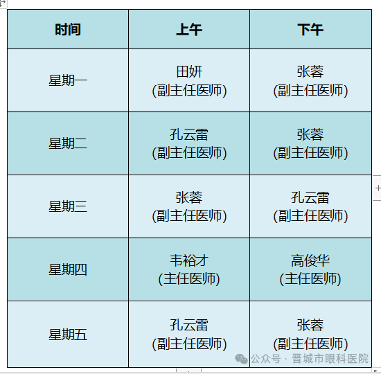 晋城市眼科医院最新专家门诊排班表,请查收!